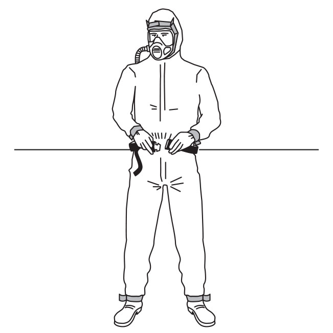 - Retirer la combinaison en la roulant sur elle-même vers l’extérieur (technique de la peau de lapin)